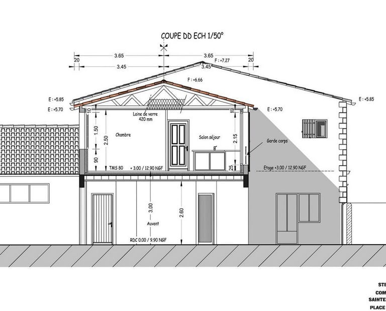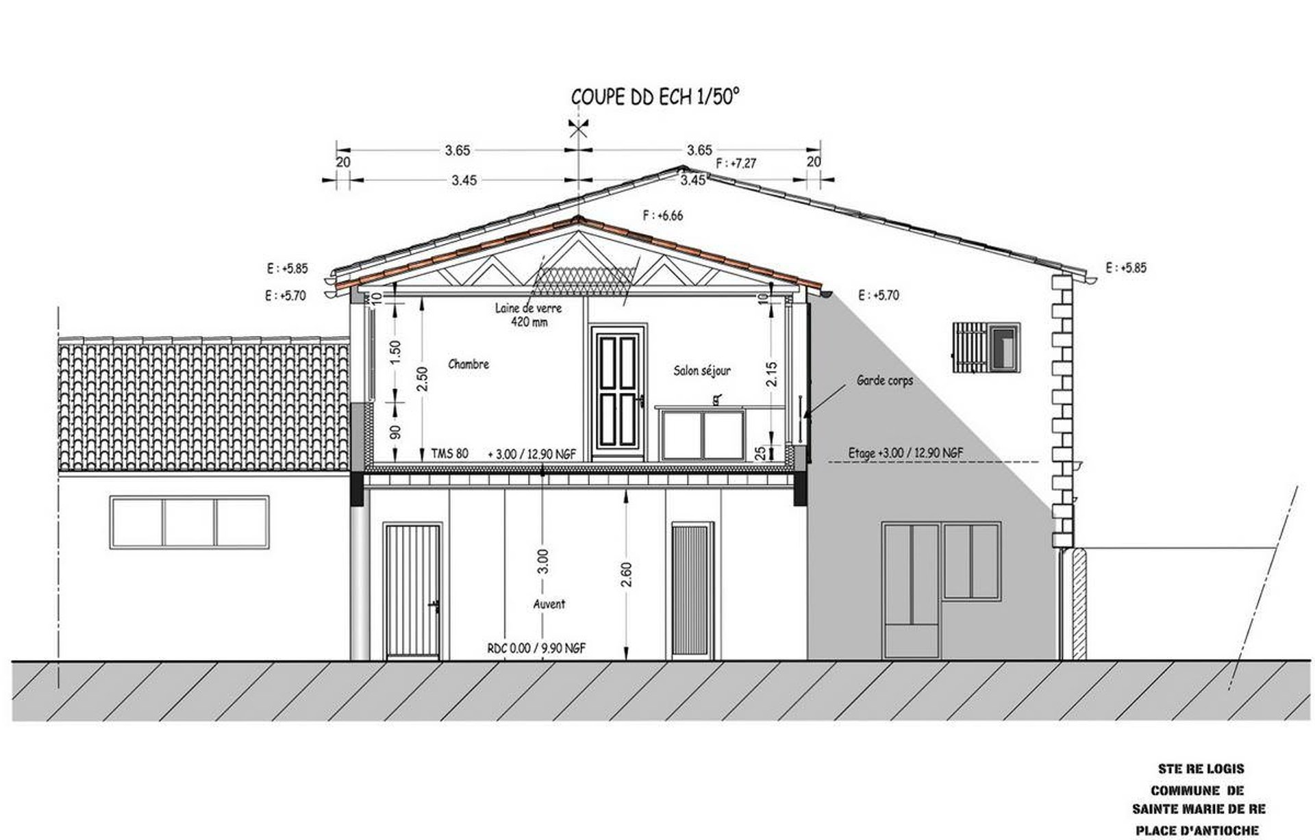 Des encadrements complets (appuis, linteaux et tableaux ) en pierres de taille massives sont prévus pour les fenêtres de l’étage.