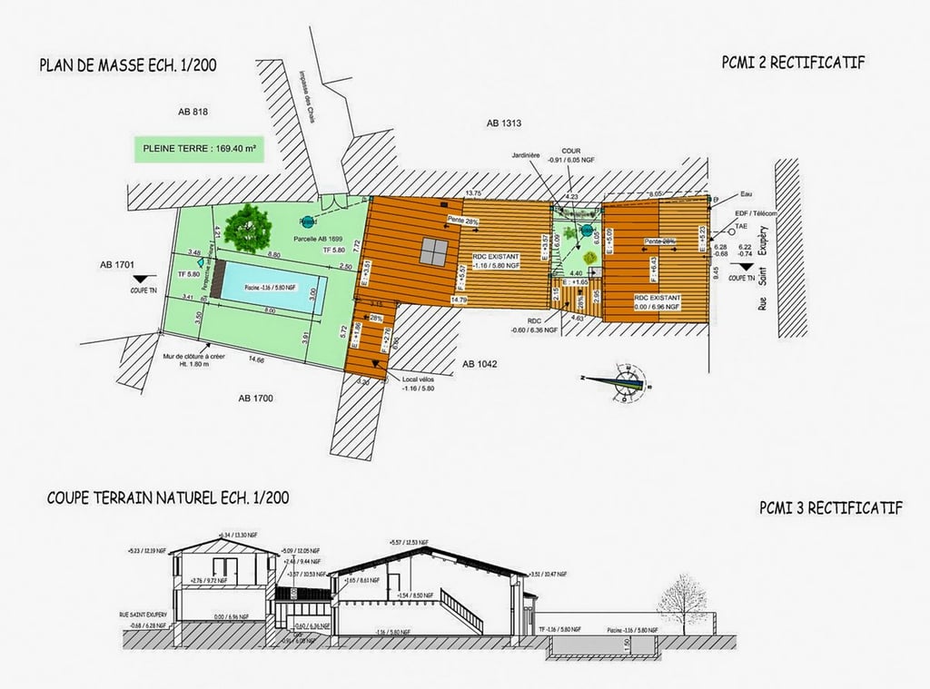 Les surfaces de plancher intérieures au bâtiment sur la rue seront conservées sans modification, au rez-de-chaussée et à l’étage existant.