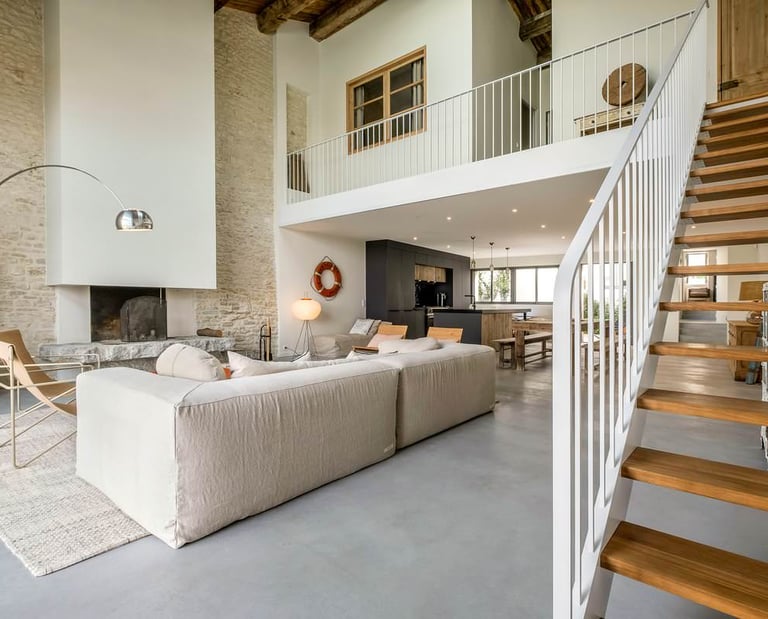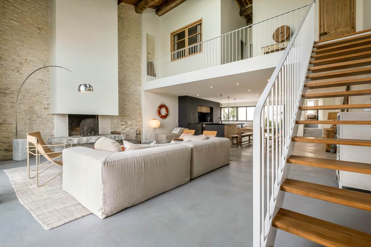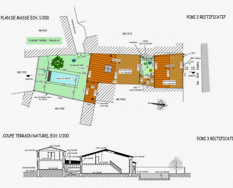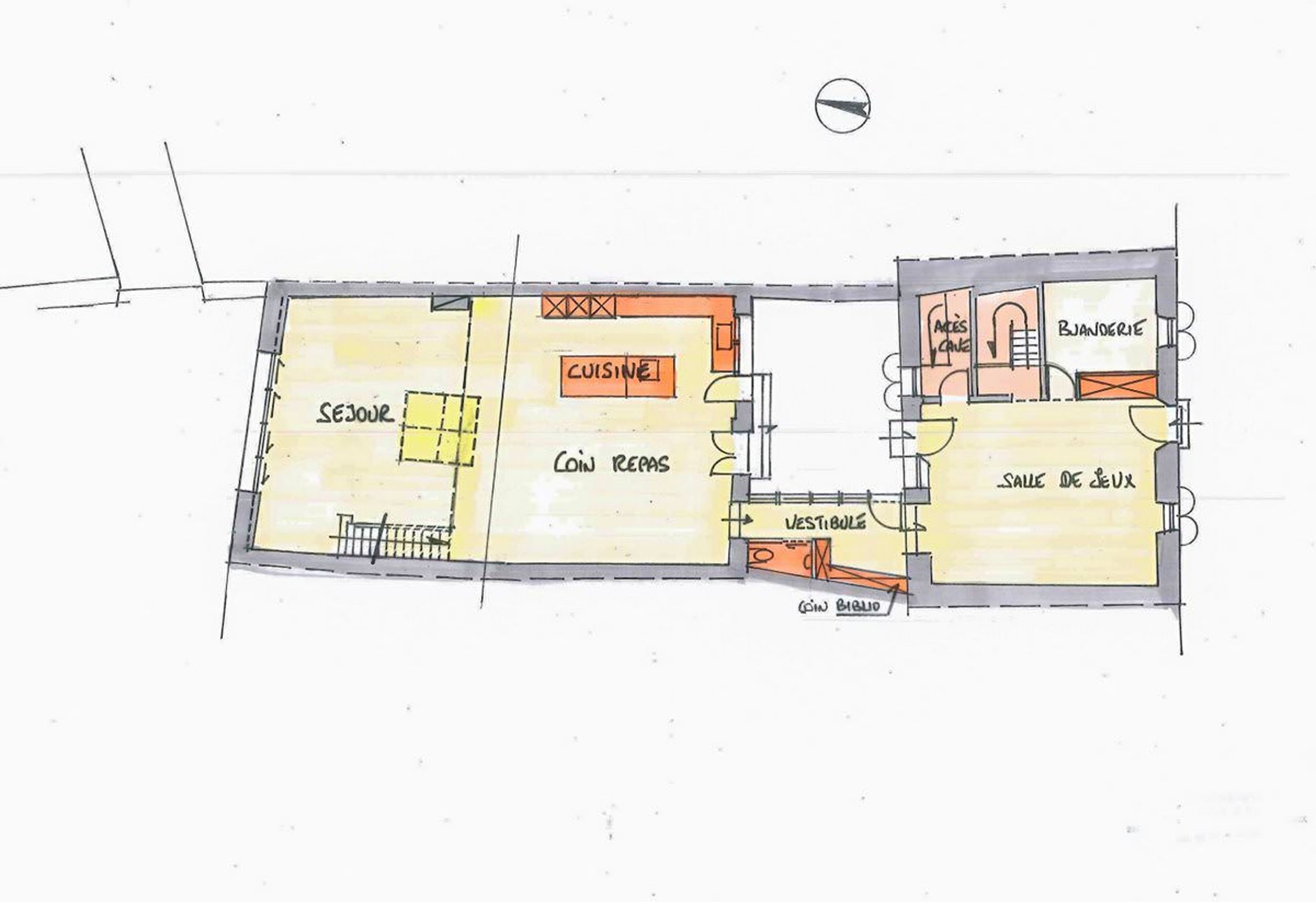 La partie chai, dont le changement de destination est demandé, est proposée avec la surface existante et conservée au rez-de-chaussée, mais avec un étage et vide sur séjour partiel.