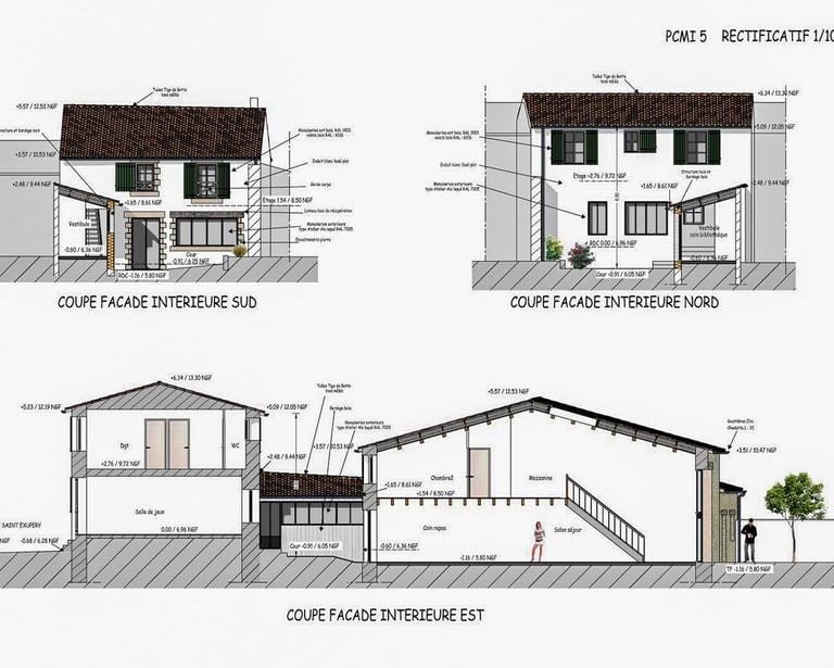 La maison d’habitation d’origine avec façade sur la rue sera traitée avec une attention particulière sur la préservation et la remise en état des menuiseries extérieures et les encadrements en pierres de taille massives. Le volume et le gabarit resteront inchangés, et la façade intérieure cour précédemment modifiée sera remise en valeur avec des encadrements pierres, des menuiseries et volets en bois conformes au programme établi.