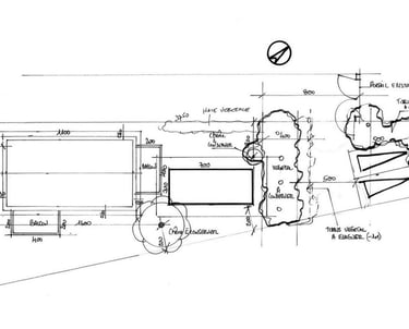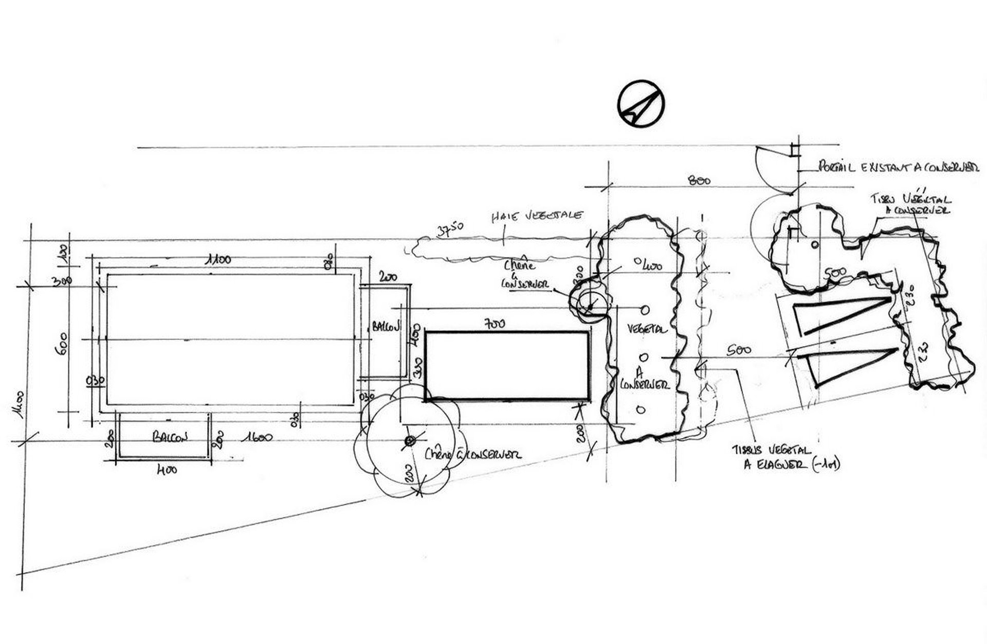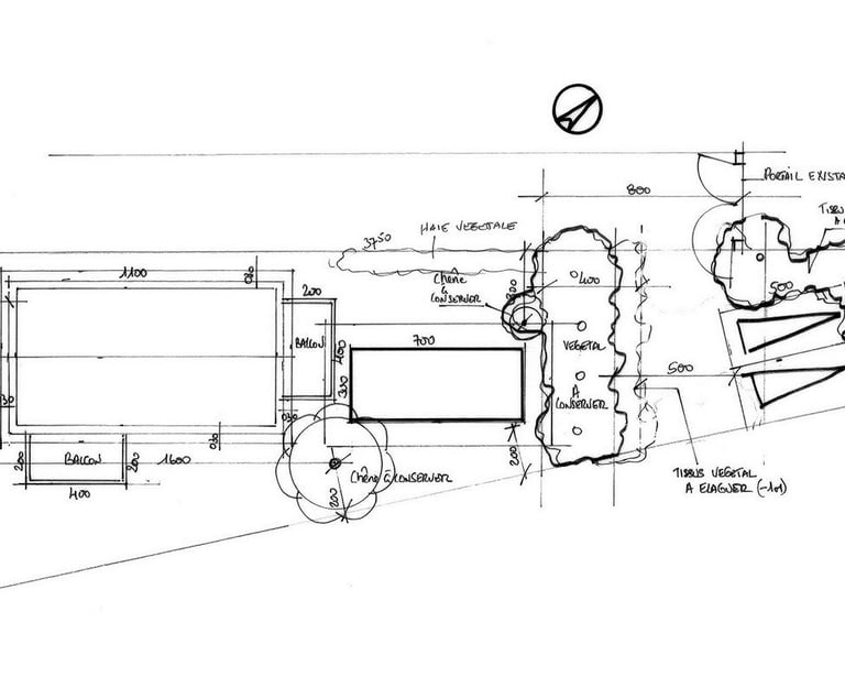 Le projet est implanté sur une parcelle intégrée dans une propriété familiale desservie par une voie privée.