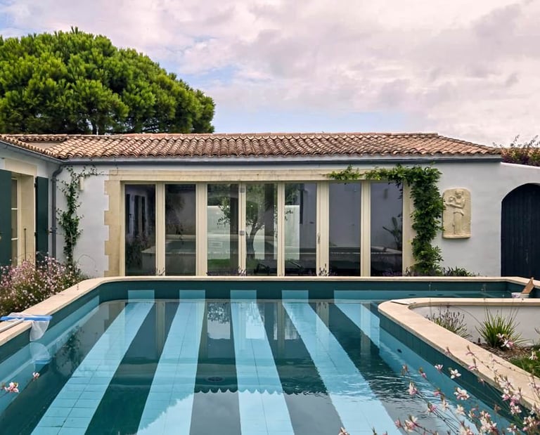 Stéphanie Okois qui a évolué dans la mode est intervenue comme architecte d’intérieur pour développer une architecture inspirée du sud de la France dans des volumes plus rhétais.