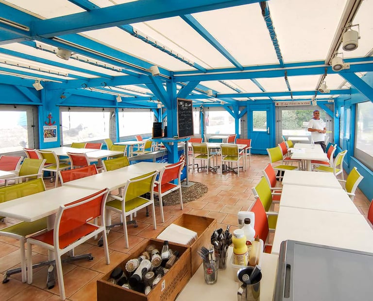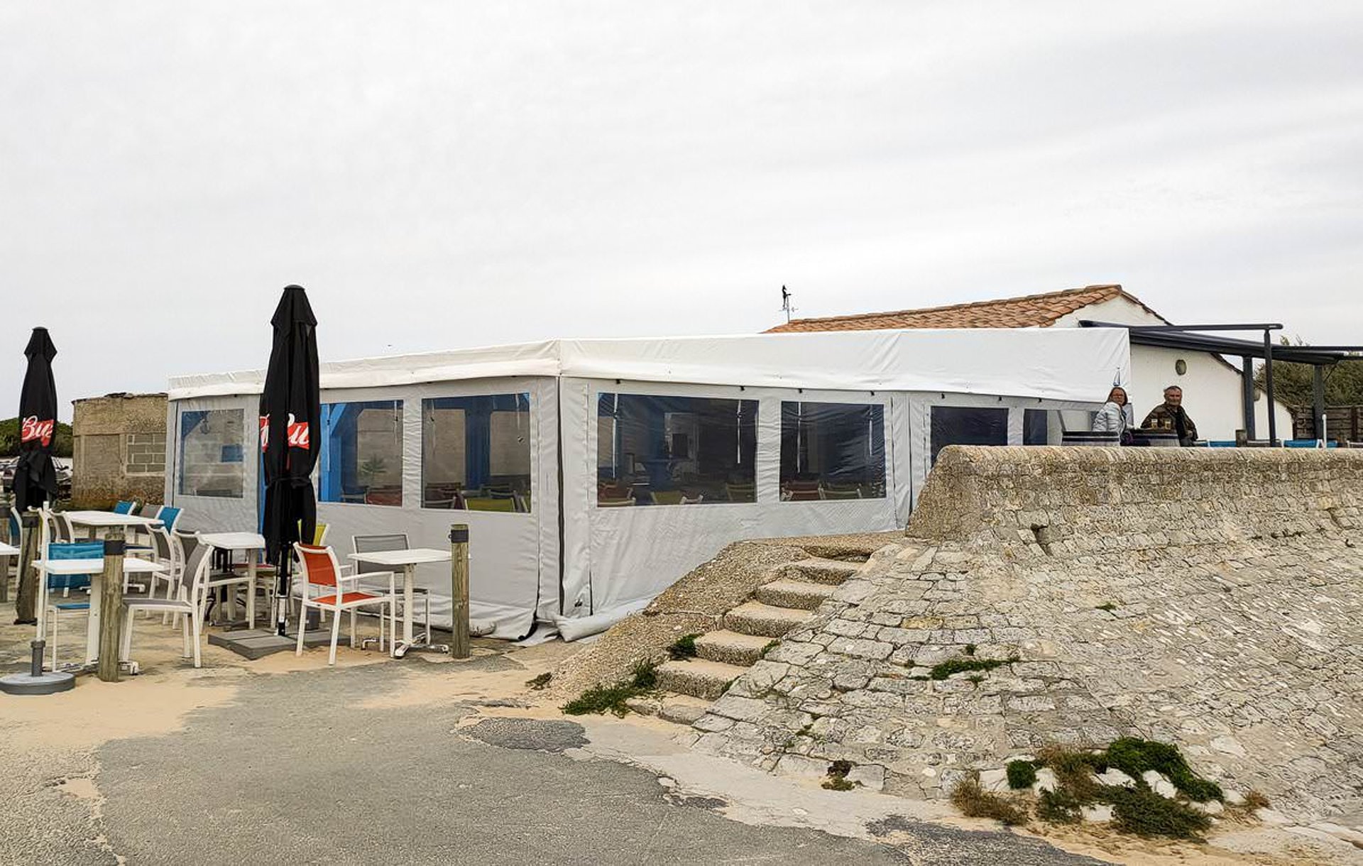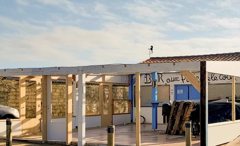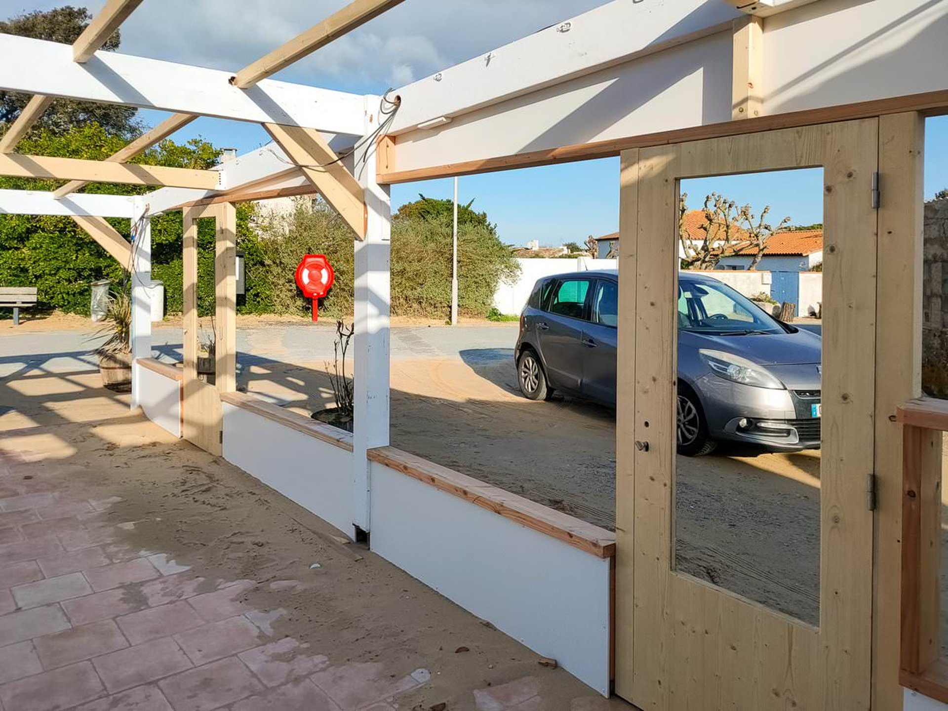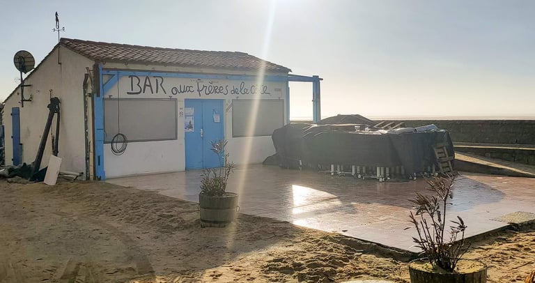 Ce projet d'extension amovible pour le bar-restaurant emblématique « Aux Frères de la Côte » à Ars-en-Ré illustre l'expertise du cabinet en interventions réversibles et respectueuses sur le littoral de l'île de Ré.